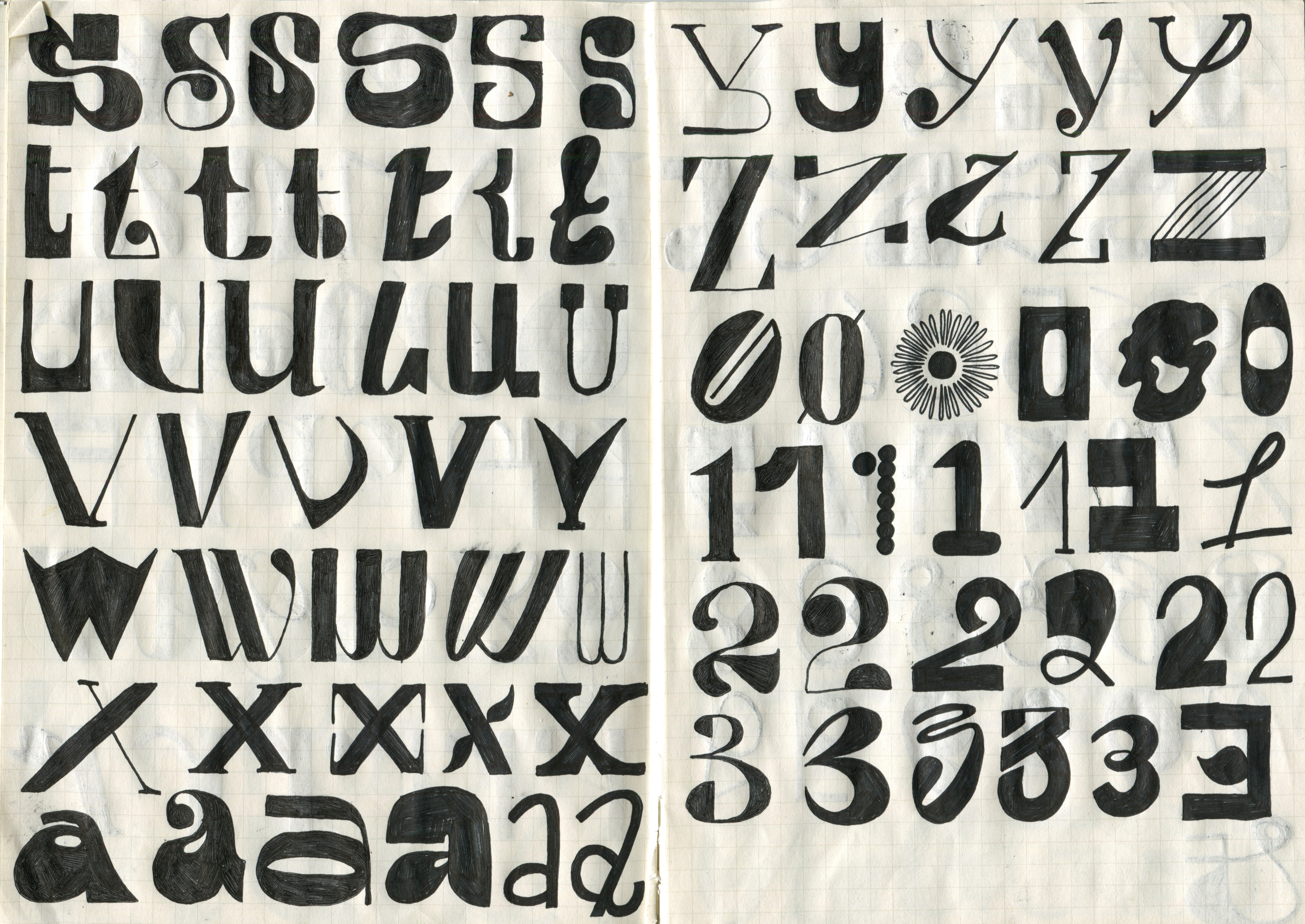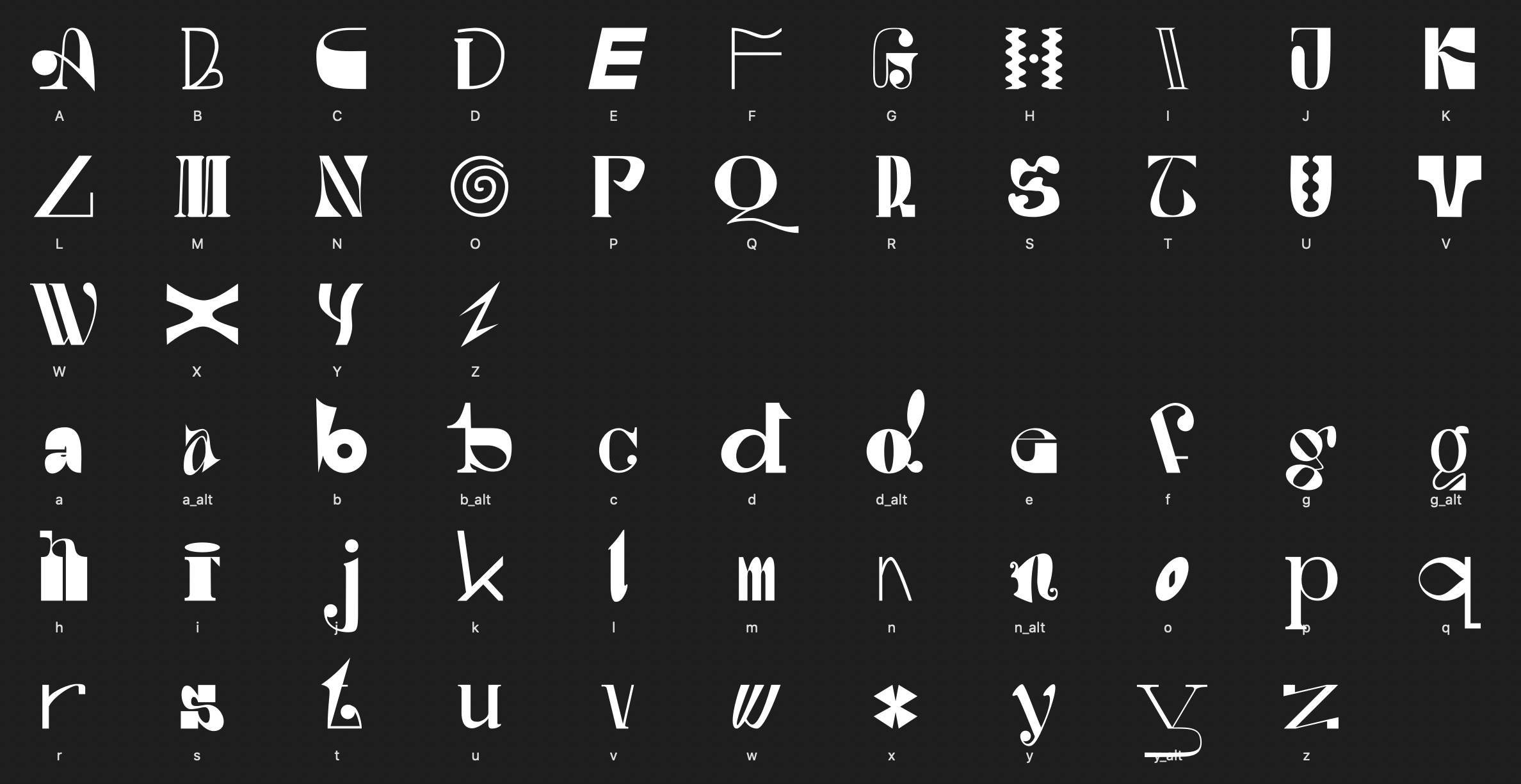 A typeface I designed after a daily practice of drawing a letter a day.