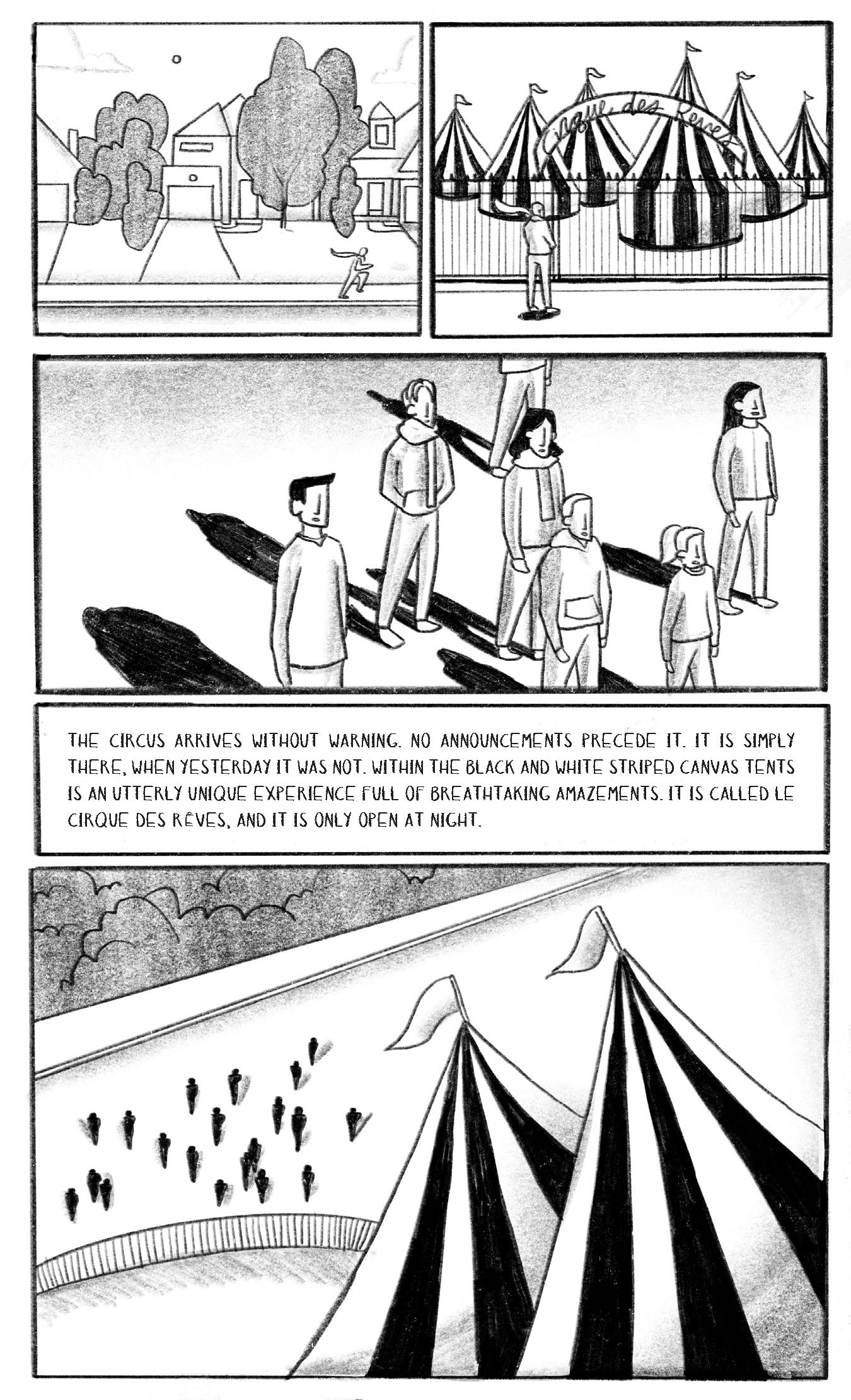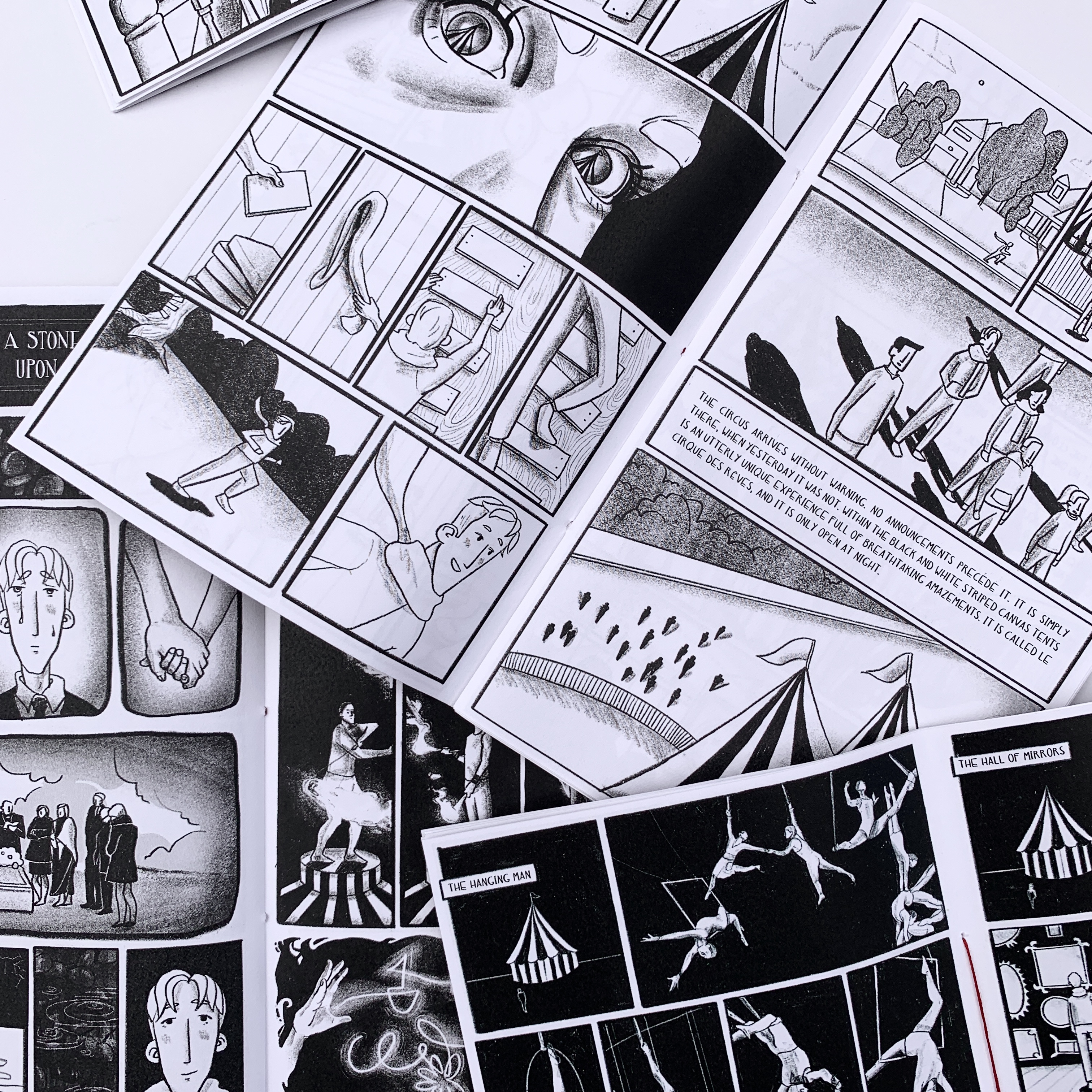 In this 20 page comic, I adapted the novel Night Circus by Erin Morgenstern. This comic depicts the experience of the circus through the eyes of Bailey, a teenager who longs for a taste of adventure.